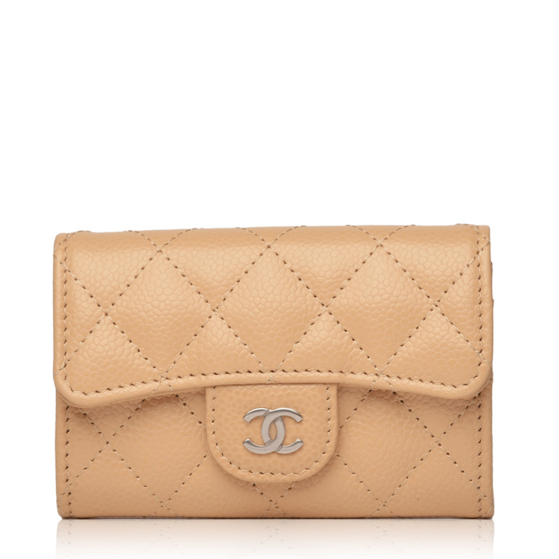The Classic Quilted CC Flap Card Holder is crafted of beige ..