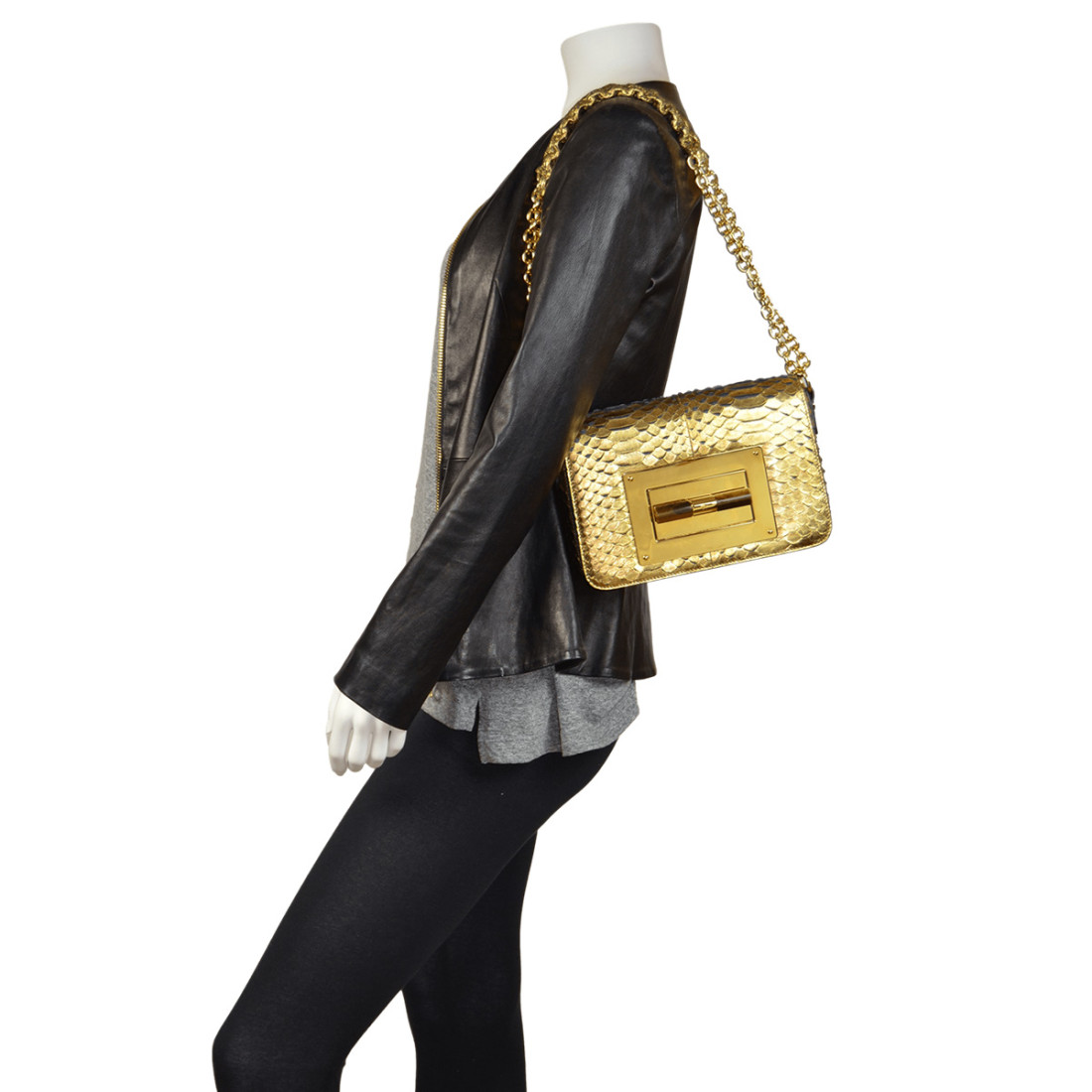 This beautiful clutch is crafted of thick calfskin and gold ..