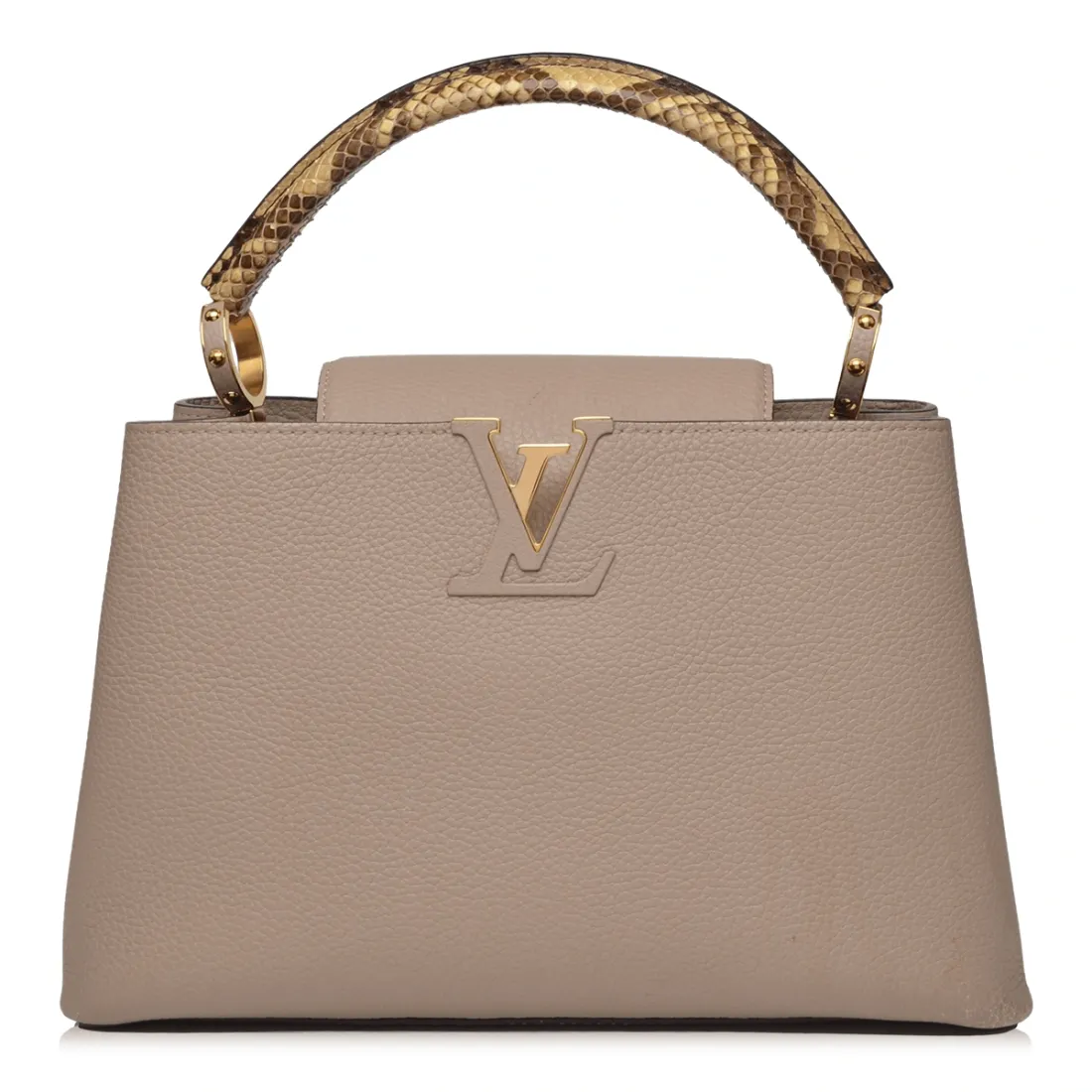 This beautiful bag is crafted of beige grainy calfskin leath..