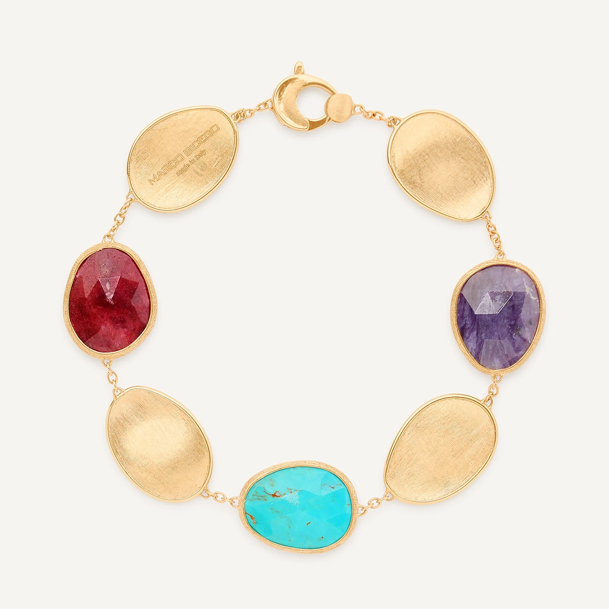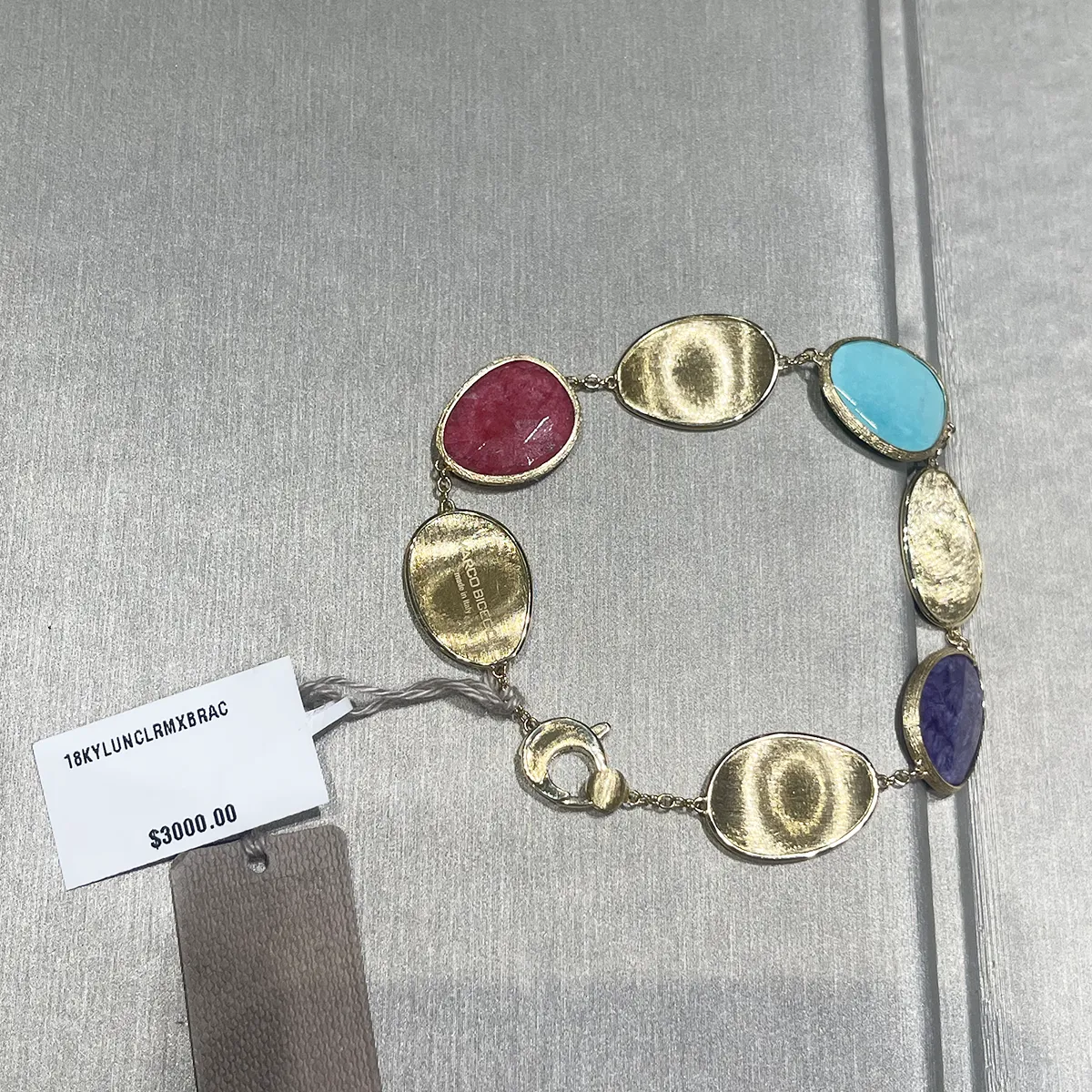 18K Yellow Gold Lunaria Color Triple Stone Link BraceletSOLD