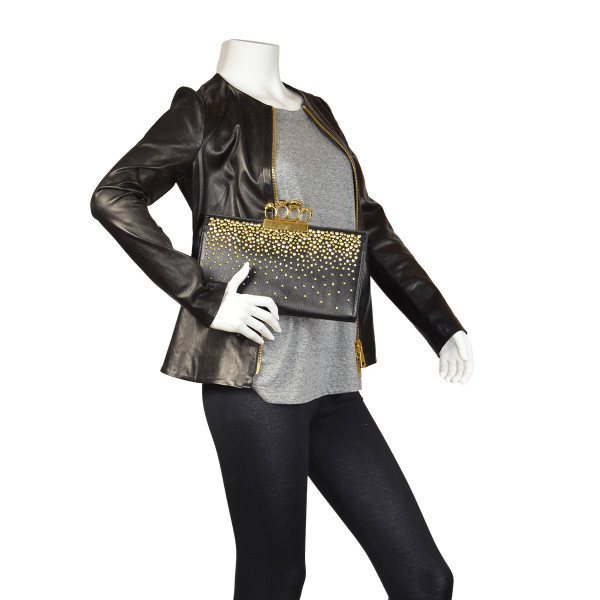 This beautiful clutch is crafted of thick calfskin and gold ..