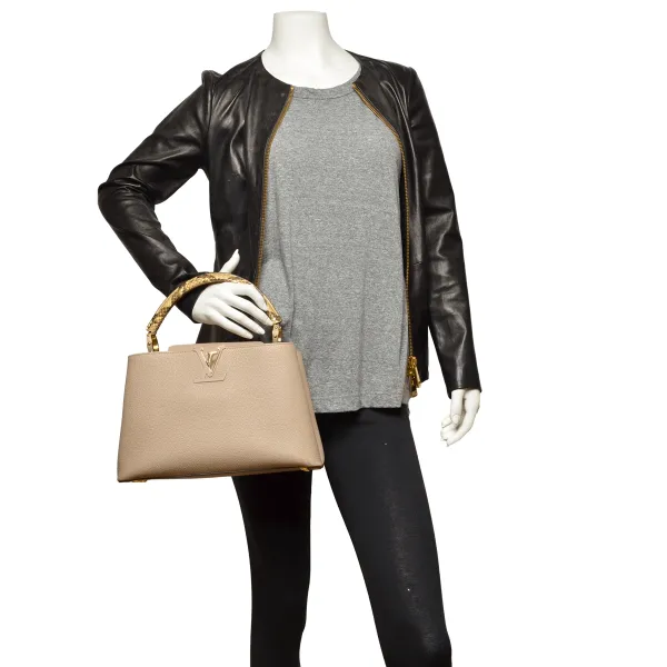 This beautiful bag is crafted of beige grainy calfskin leath..