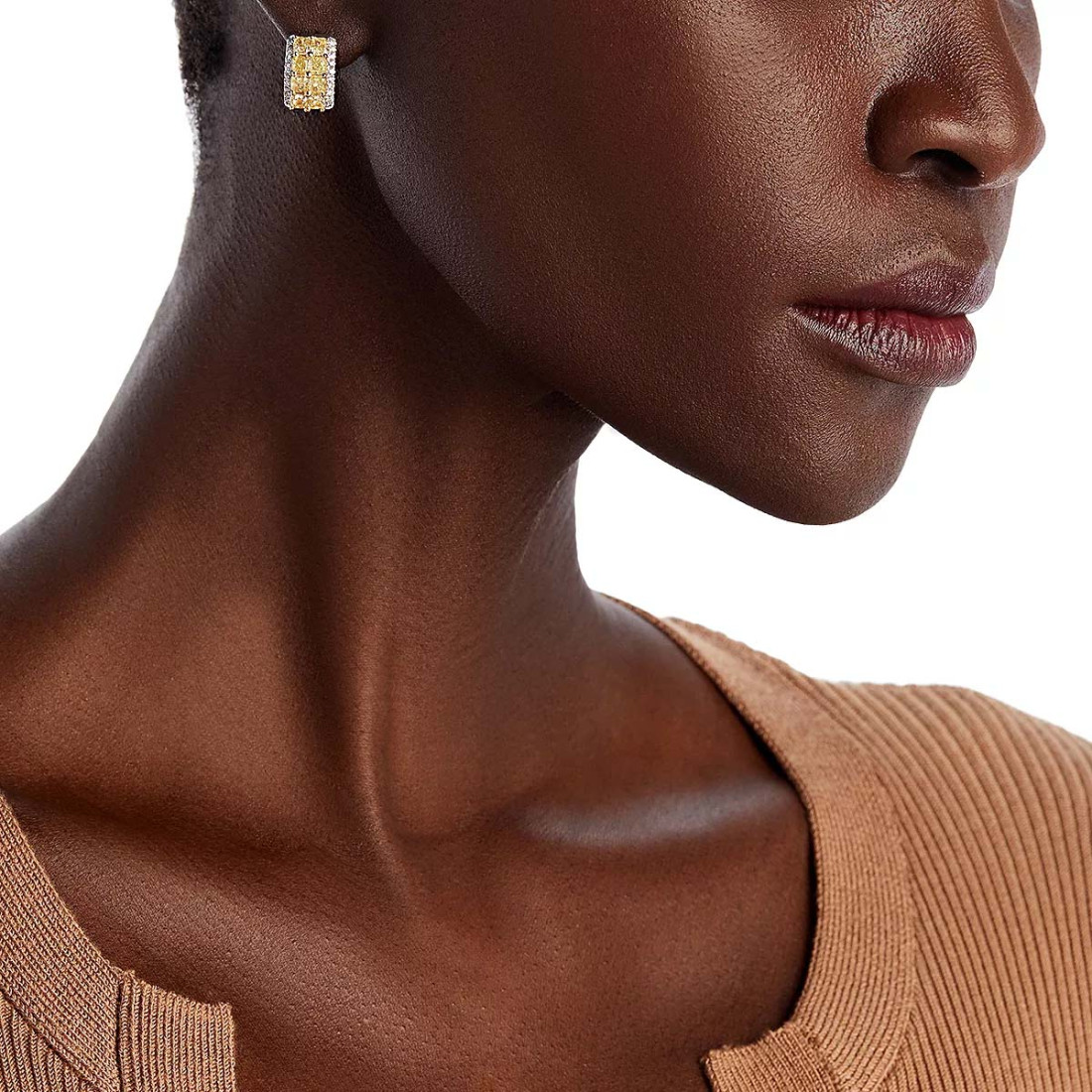 White & Yellow Diamond Huggie Hoop Earrings In 14K White And Yellow Gold, 4.30 Ct. T.w.