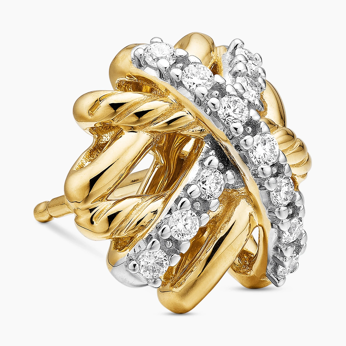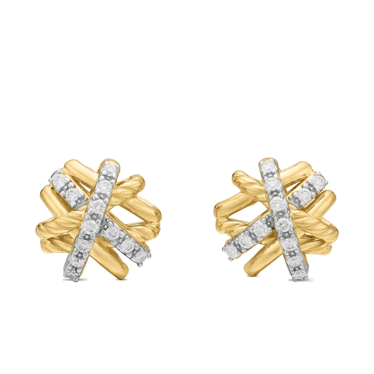 Crossover Stud Earrings In 18K Yellow Gold And Diamonds, 11mm