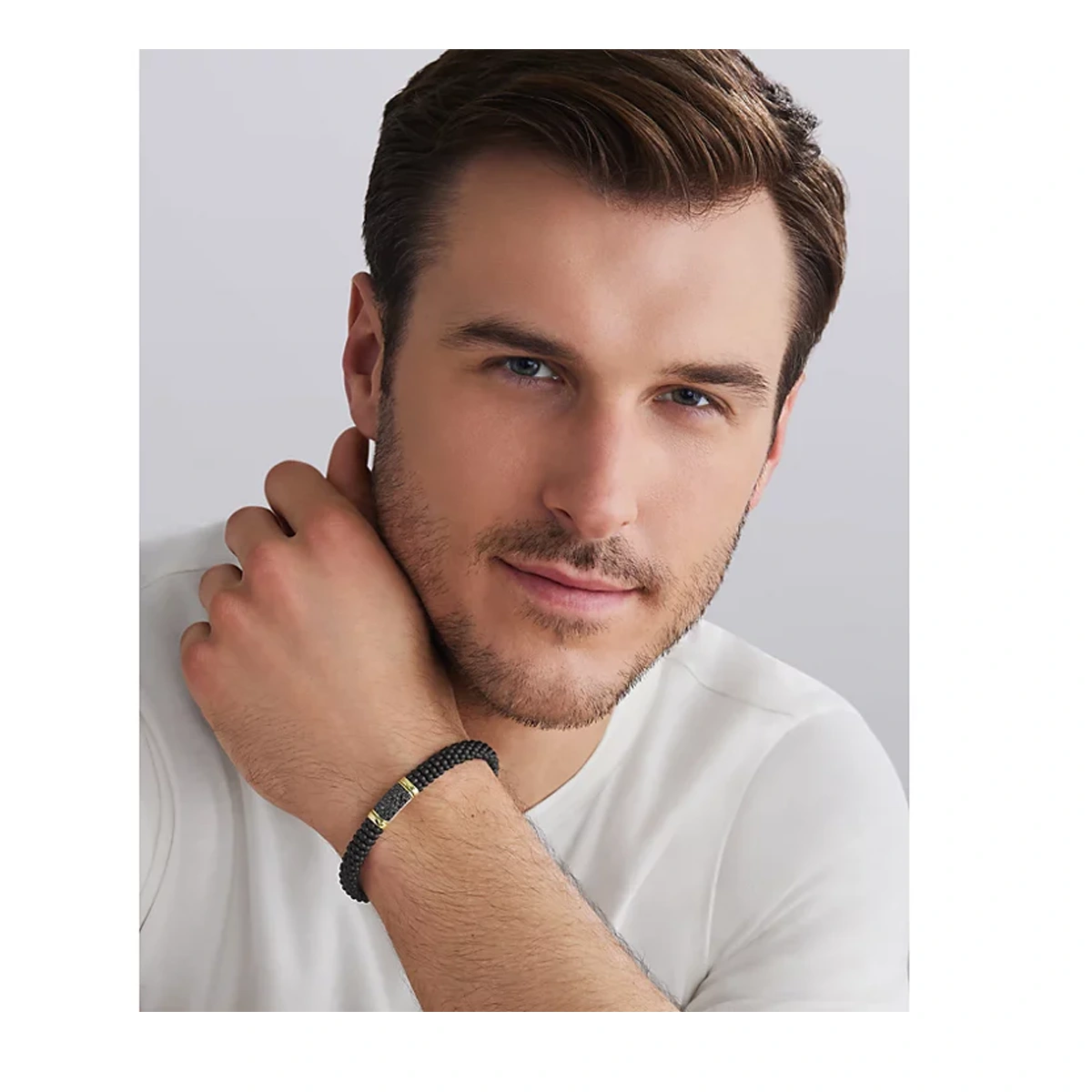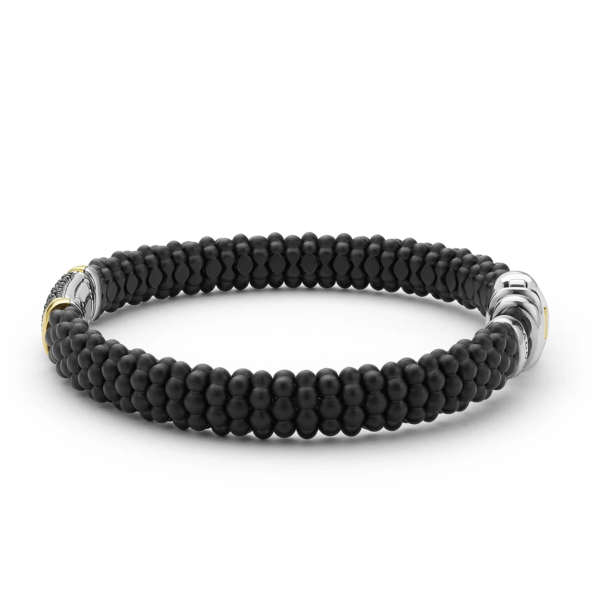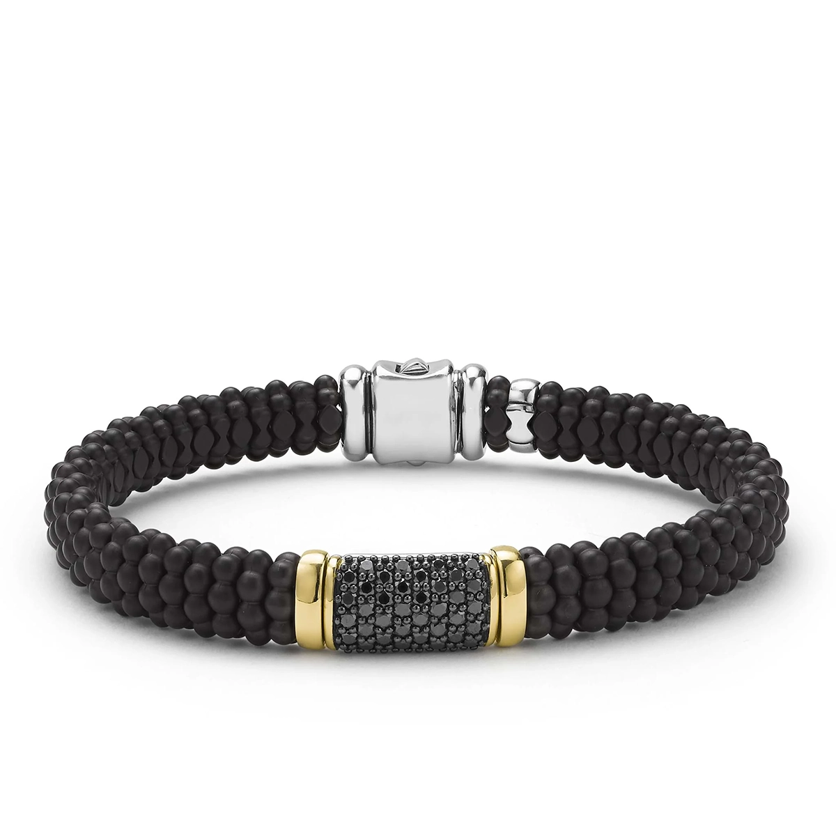 Exuding quiet power and sleek refinement, this brand-new piece from the LAGOS “Black Caviar” collection features matte black ceramic beads artfully contrasted with black diamond stations and rich 18K gold accents. The 9 mm width makes a bold yet sophisticated statement, while the 0.684-carat natural diamonds (G-H color, SI clarity) bring authentic luxury. Sterling silver foundations ensure lasting durability without compromising elegance. At a retail value of $2,800, this is the kind of understated extravagance that speaks volumes without shouting.
