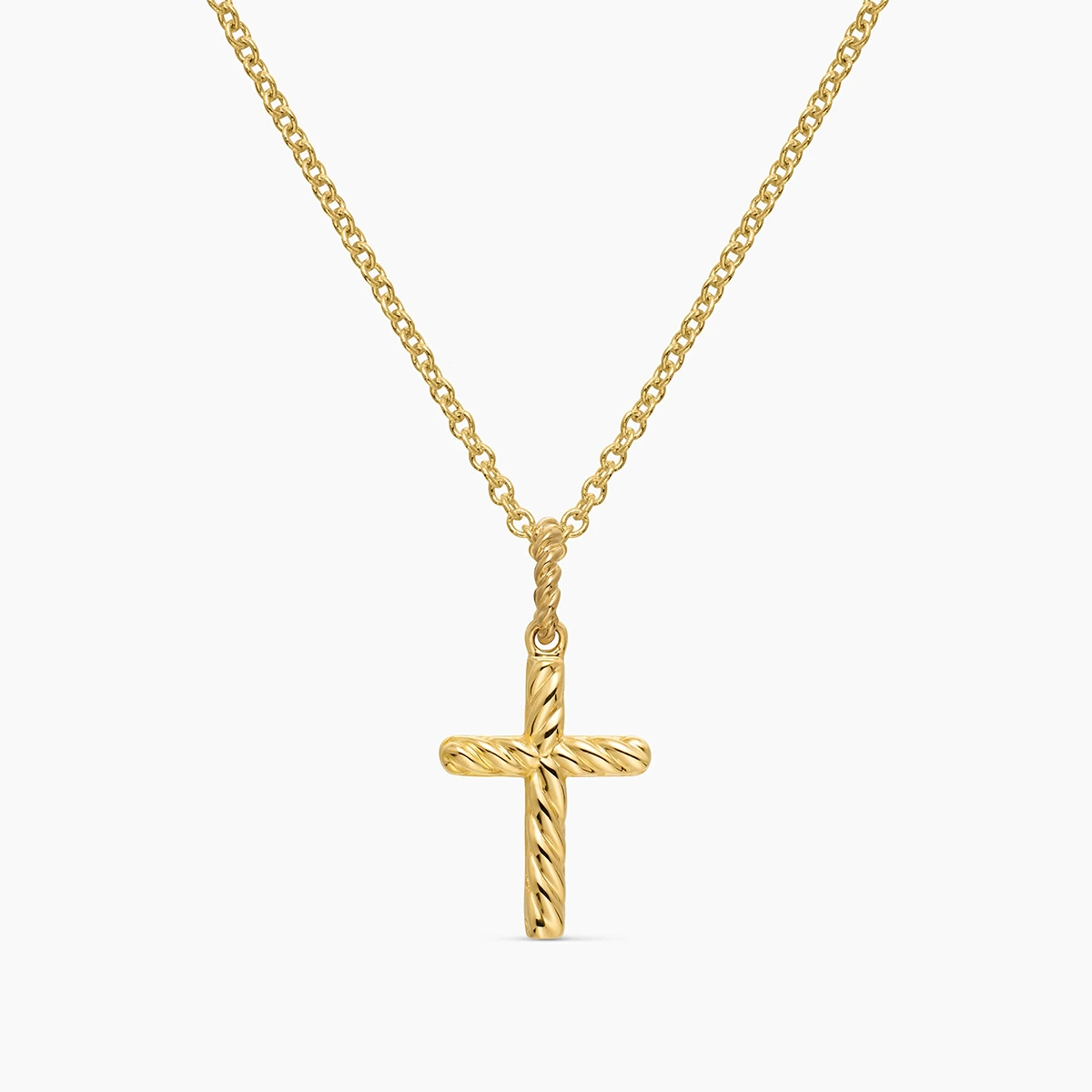 This classic and popular DAVID Yurman cross necklace is crafted of 18k yellow gold and diamonds. perfect for everyday wear. Brand new, retails for $1,250
